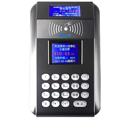 7、操作簡(jiǎn)單,按‘查詢’可顯示當(dāng)前消費(fèi)機(jī)消費(fèi)的總金額和總次數(shù);‘設(shè)定’可顯示當(dāng)前消費(fèi)機(jī)時(shí)間;‘清除’可取消當(dāng)前操作金額,進(jìn)行另外設(shè)定;‘確定’