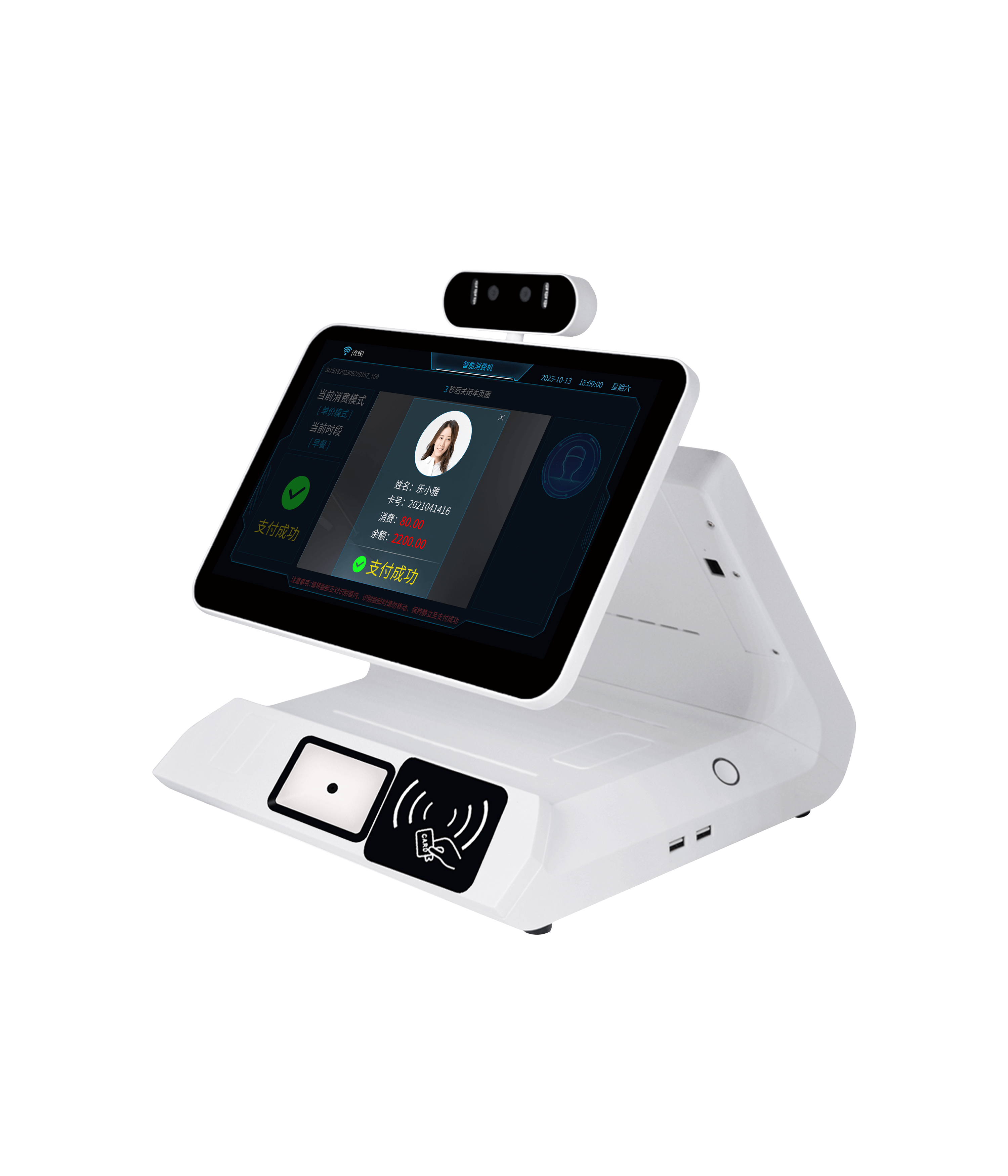 除了掃碼支付,優(yōu)卡特設(shè)備集成語(yǔ)音交互、人臉識(shí)別、手勢(shì)感應(yīng)等功能。例如在超市場(chǎng)景中,消費(fèi)者只需說(shuō)出“用會(huì)員積分支付”,設(shè)備即可自動(dòng)完成抵扣計(jì)算;在快餐店,AI攝像頭可識(shí)別餐盤(pán)數(shù)量并秒級(jí)生成賬單,減少人工核驗(yàn)成本。
