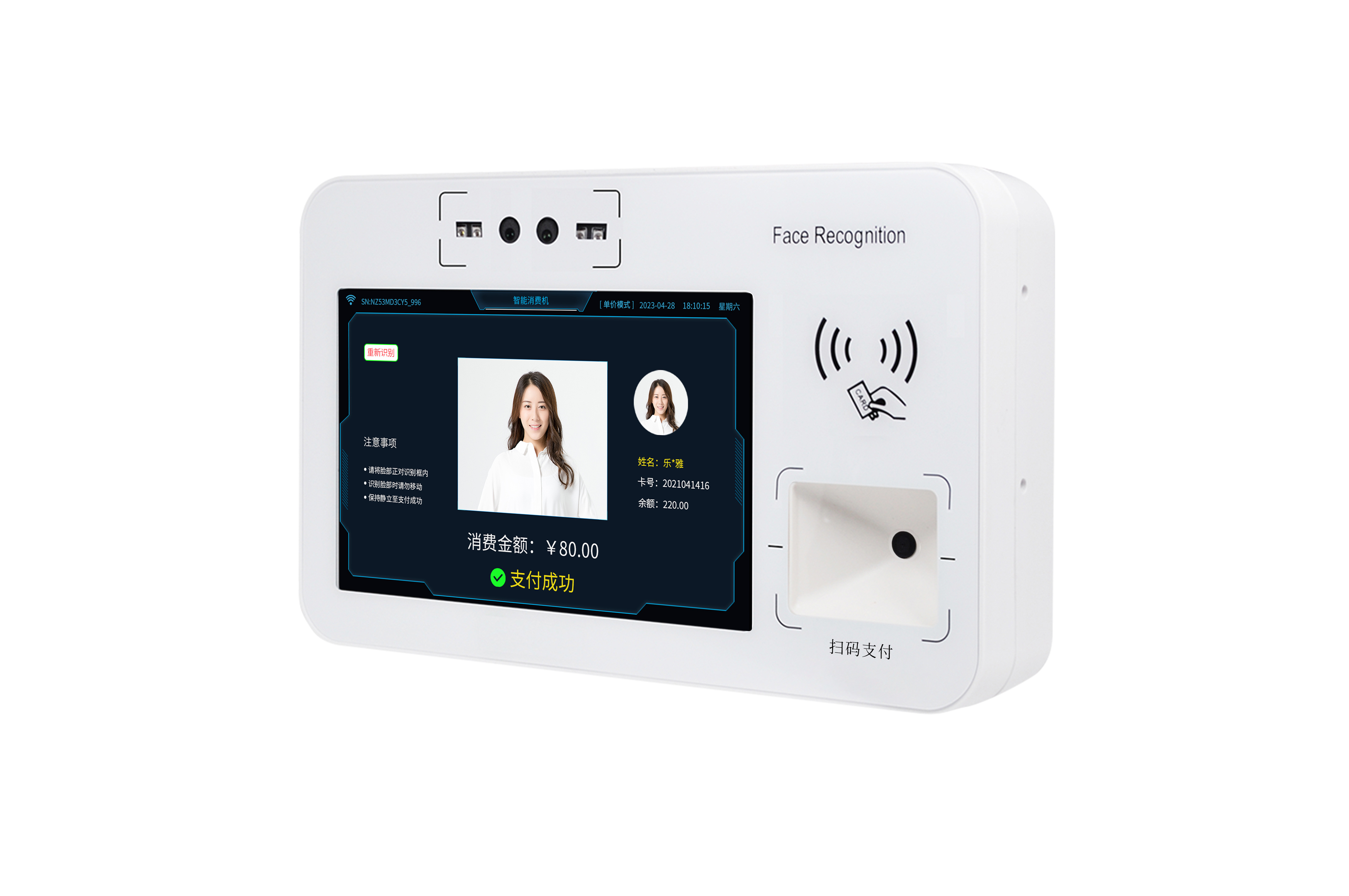 支持多種快捷支付方式(員工卡/工牌、手機(jī)二維碼、人臉識別等)。
